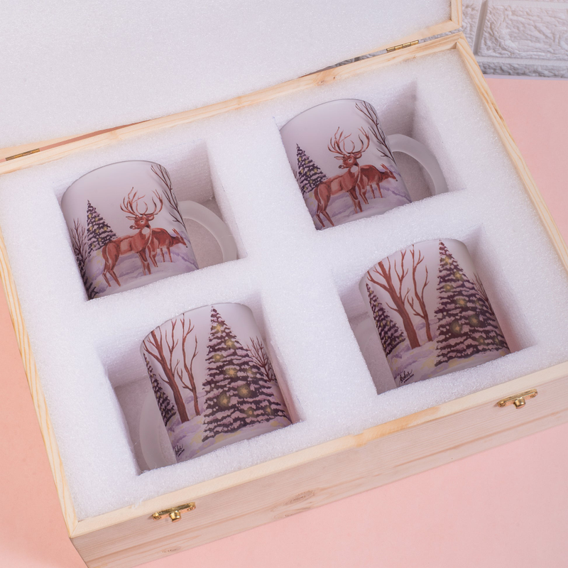 The Christmas Frosted Glass Mug is a festive snowy design that can make a perfect Christmas gift for your loved ones. But you don’t have to wait for Christmas to add this gorgeous set of 4 mugs to your own collection!