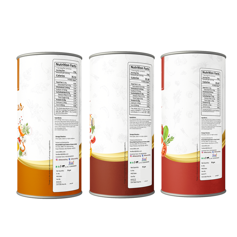 Introducing DIBHA Honest Snacking Instant Ready Soup Cups – a delightful fusion of convenience and flavor. Indulge in the rich and authentic taste of Hot & Sour, Manchow, and Tomato soups, each carefully crafted for a satisfying experience. With 21 individual cups per package, these portable cups contain 10g of premium soup premix powder, ready to transform into a nourishing 150 ml serving of warm goodness. No artificial preservatives, MSG-free, and sustainably packaged, DIBHA’s soup cups redefine on-the-go snacking with honest ingredients and easy preparation.