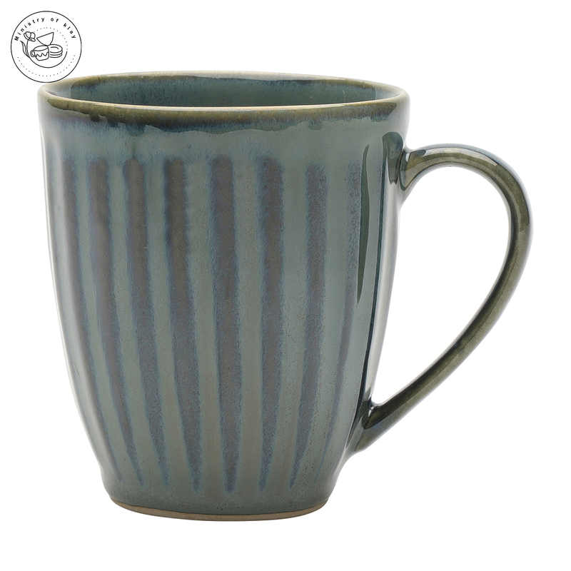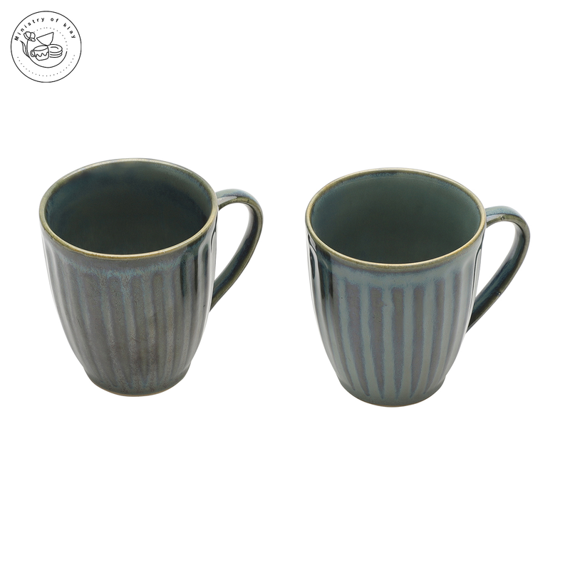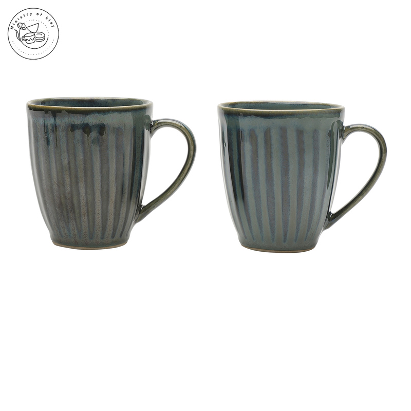 Ministry Of Klay Forest Green Groved Ceramic Coffee Mugs / Microwave Safe, Set of 2, 350ml each
